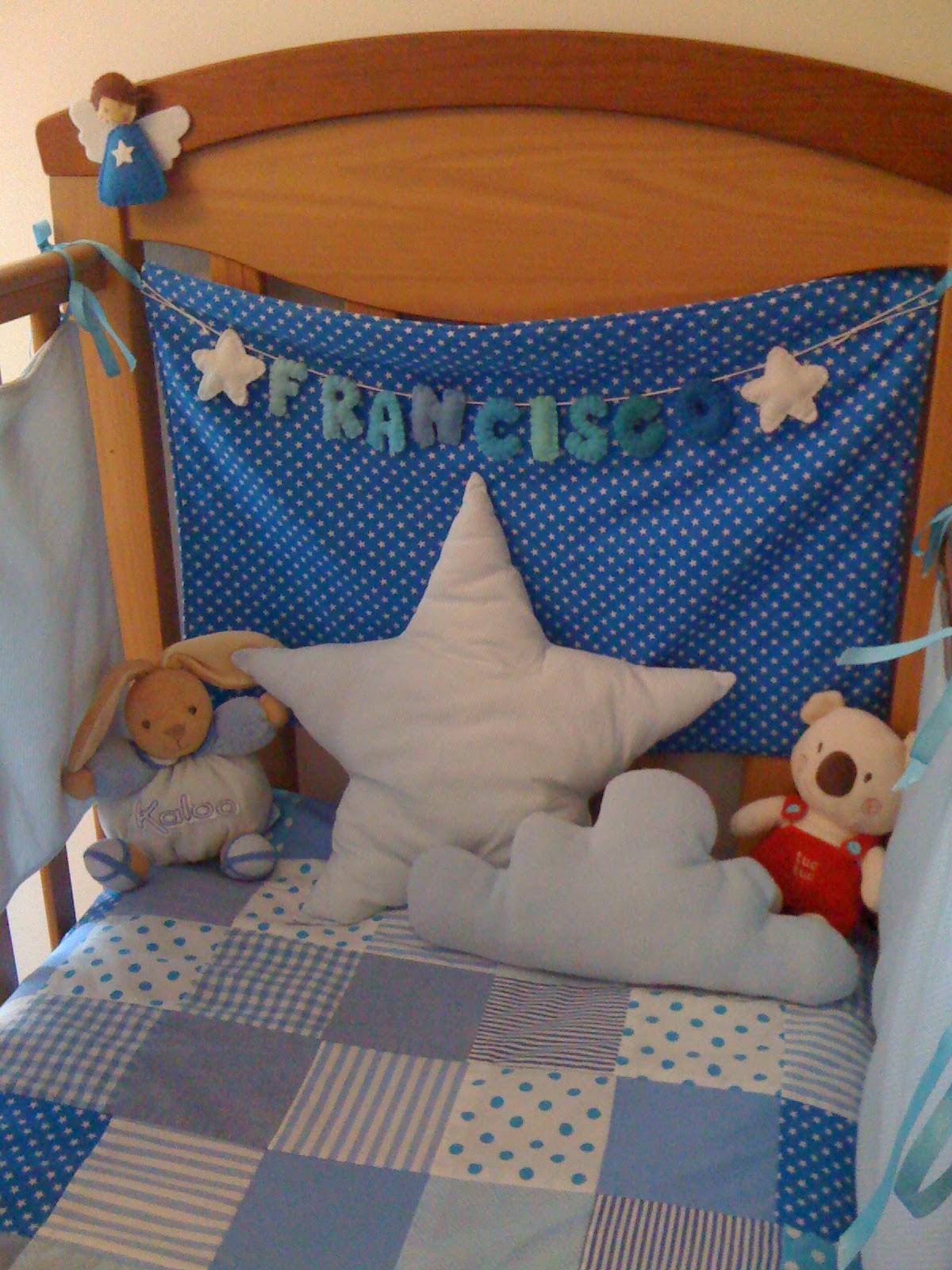 O cortinado e o candeeiro foram personalizados por mim com fitas e estrelinhas azuis white star Emoticons Secretos do Facebook